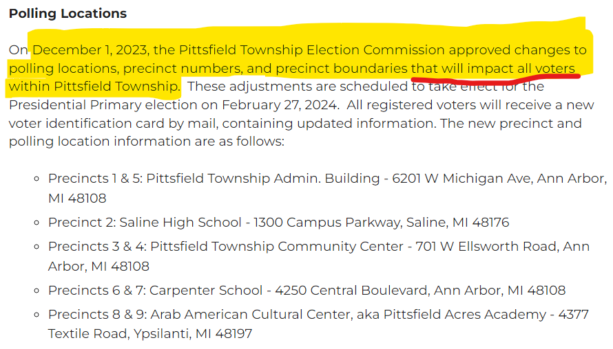 To my surprise, a quick internet search revealed that many cities have changed, or plan to change, their polling locations for 2024, and this is just what I located on the internet. The letter I received is not yet posted on Michigan.gov, so it is safe to assume that tons more cities are changing their locations but have not yet posted the information to the state or city website. Here’s a few places that changed voting locations for the 2024 elections: