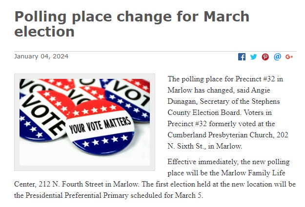 Last week, I received a letter in the mail from the city that stated the 2024 election polling locations have changed for my city. The letter looked like junk mail and was not labeled election information or anything of that nature. My spouse opened it, I would have thrown it away.