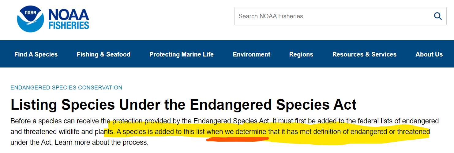 Then there’s NOAA, who now also has the authority to declare species as Endangered: