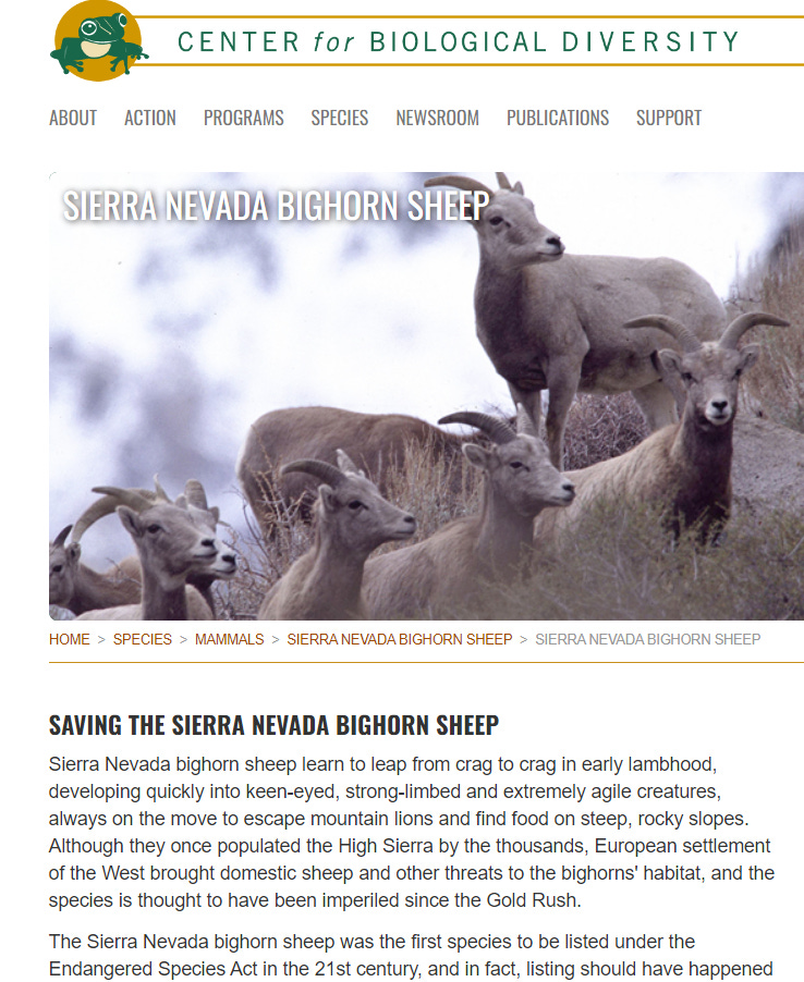 Yet somehow, as of 2008, the Sierra Bighorn was officially added to the Endangered Species Act and 40,000 acres of land were labeled off-limits to citizens for these sheep.