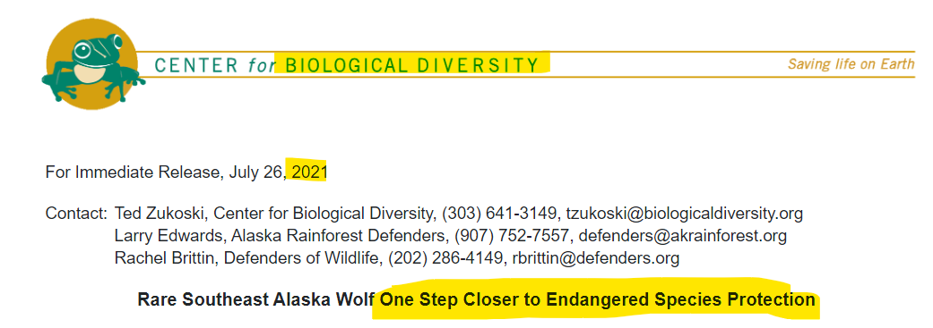 They also wanted to list the Alaskan Wolf. In each of these cases, U.S. Fish & Wildlife Service found the petitions either unwarranted or unsubstantiated with scientific fact. But, these findings only occurred after citizens used their own financial resources to fight the petitions, often times in court.
