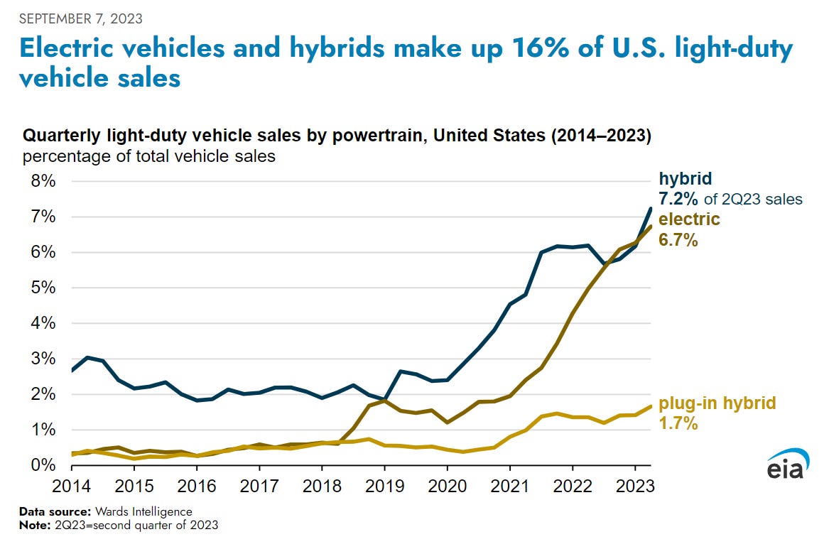 Which would you pick? You can say, “I’d never pick the EV!” but when those are your options, you become a realist really quick. This is what actually lead to EV sales soaring in the US during these years, but the media wants you to believe all of these people rushed out to buy these vehicles cuz Climate Change. In fact, the three people I personally know who bought electric/hybrid during these years all did so because their lease was yanked out from under them due to the vehicle shortage and nothing else in their budget was available.