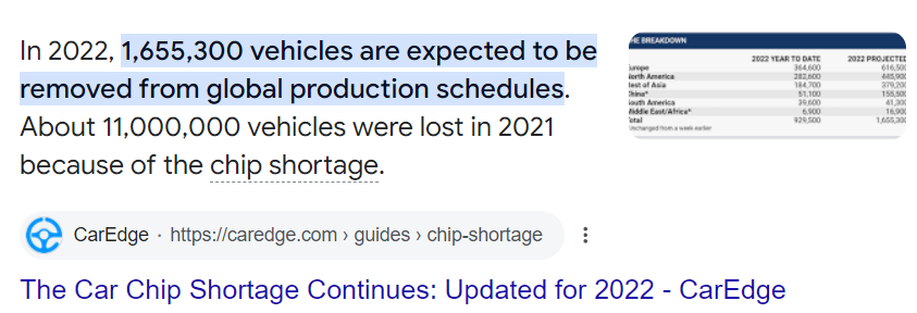 Rewind to 2021 and 2022, the years of the automotive shortage in the USA.