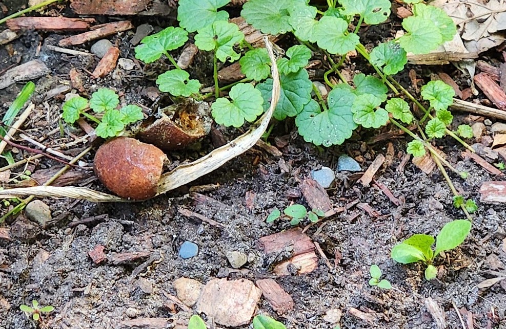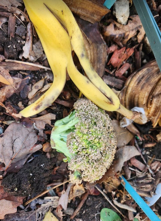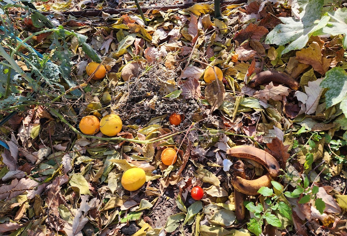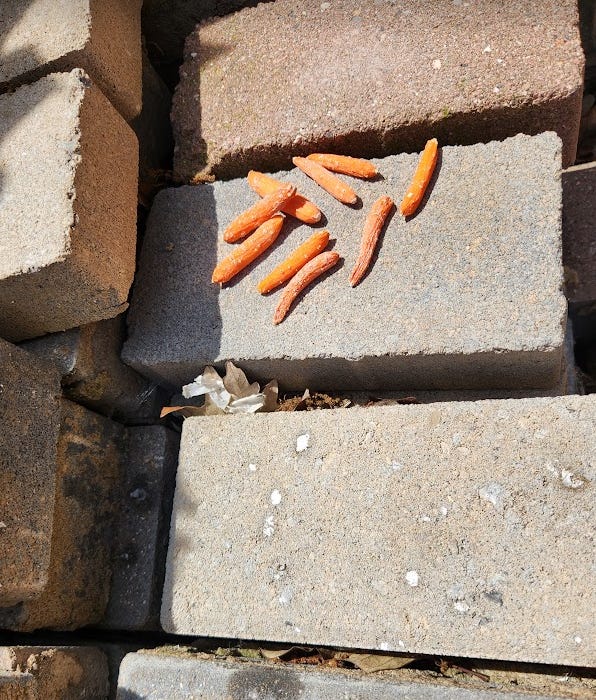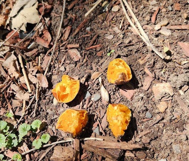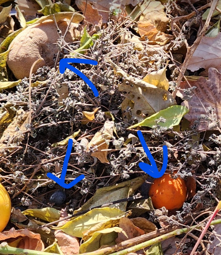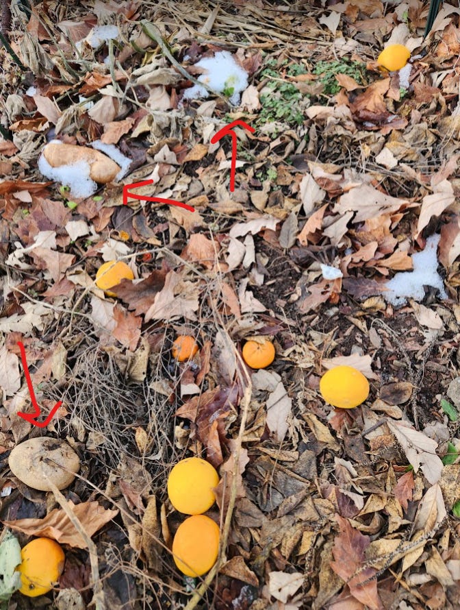 Fast forward to December 8th, 2024; the snow has almost all melted and what do we see? The same damn oranges and that potato!