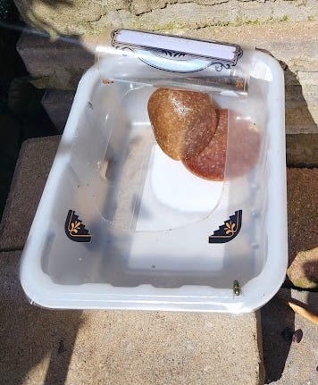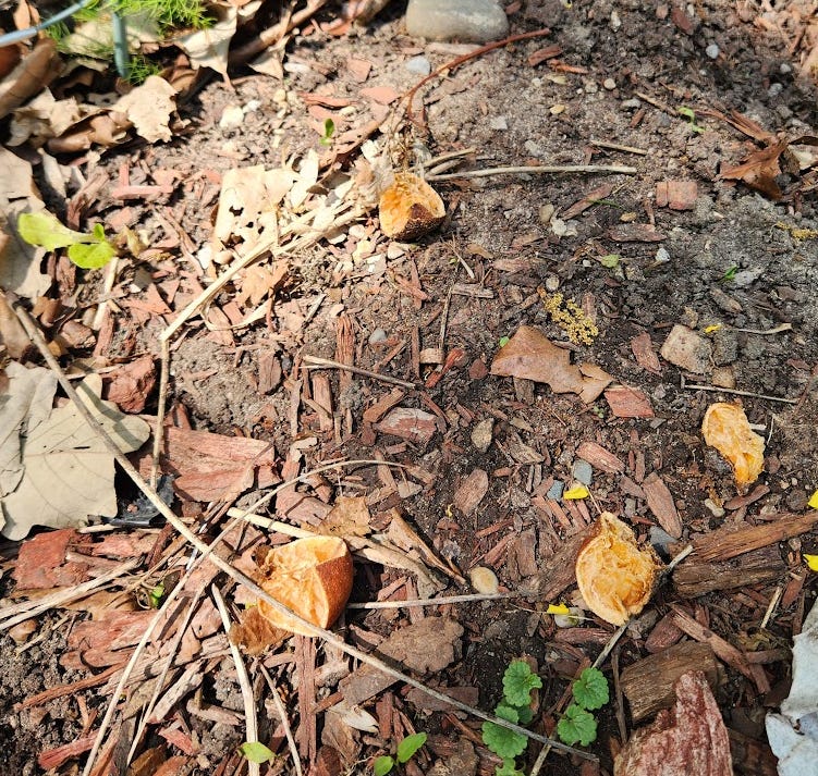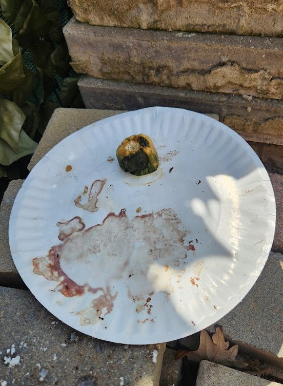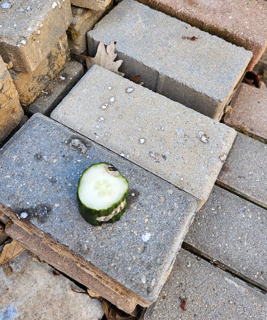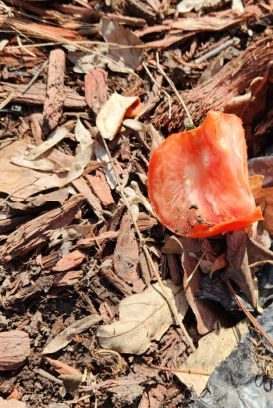 …so I cut it into quarters and put it back out. Surely the ants or slugs will attack this stuff, right?