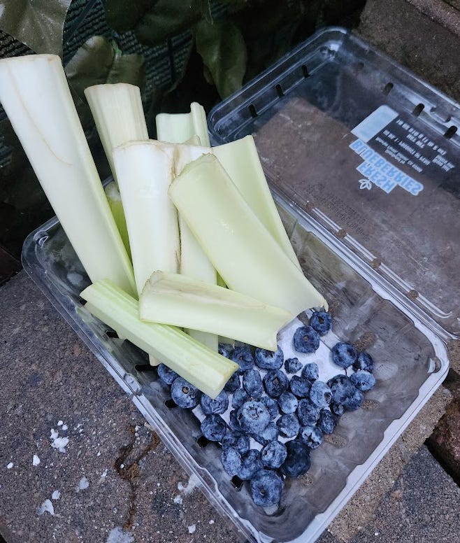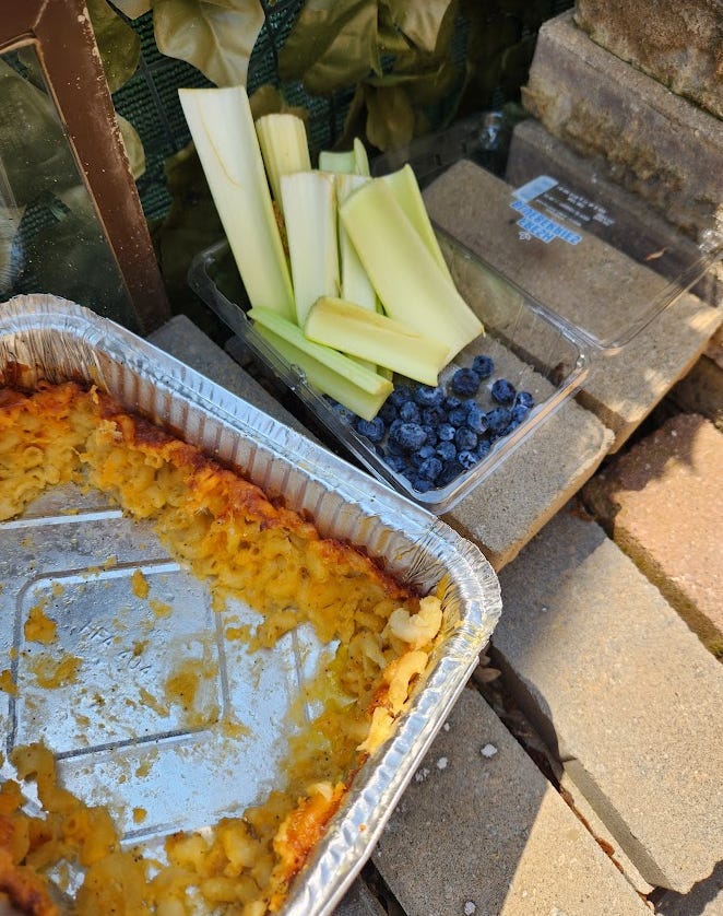 The following morning, someone had some mac but nobody wanted the blueberries or celery: