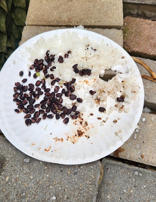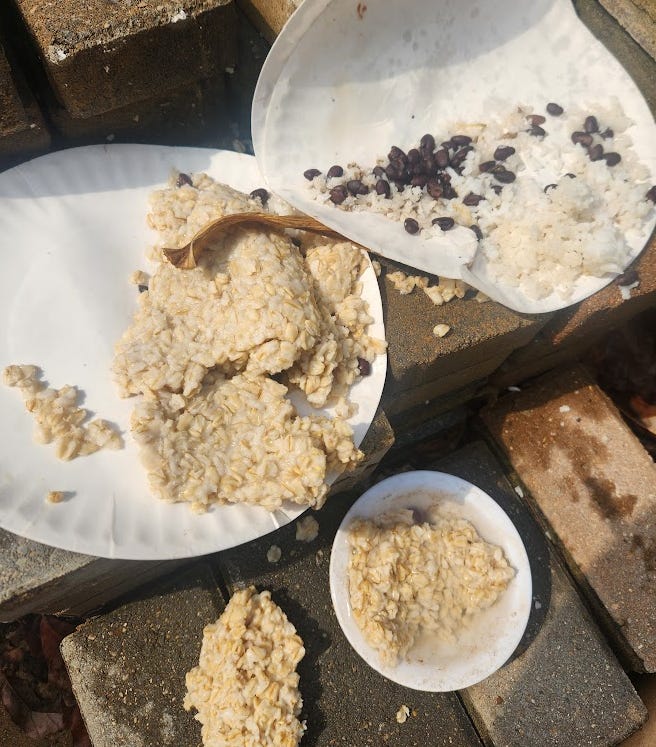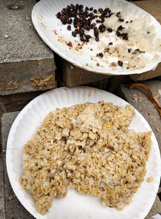 Let’s try the black beans and rice for a second night and add Farmers We Know brand Sprouted Rolled Oats oatmeal (plain, nothing added, made in a slow cooker because I don’t touch microwaves)