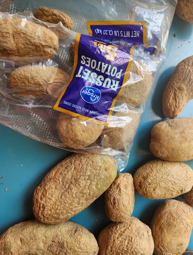 Nobody wanted the potatoes and again, and, just like the last potatoes, instead of sprouting roots, they began to shrivel.
