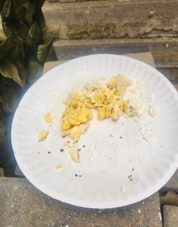 It rained, the sour cream washed away, eggs held firm and nobody took any.