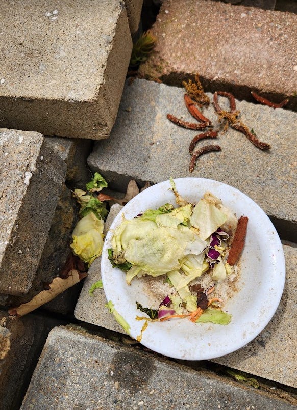 Chicken scraps and the same damn cucumber. Ants, where are you?!: