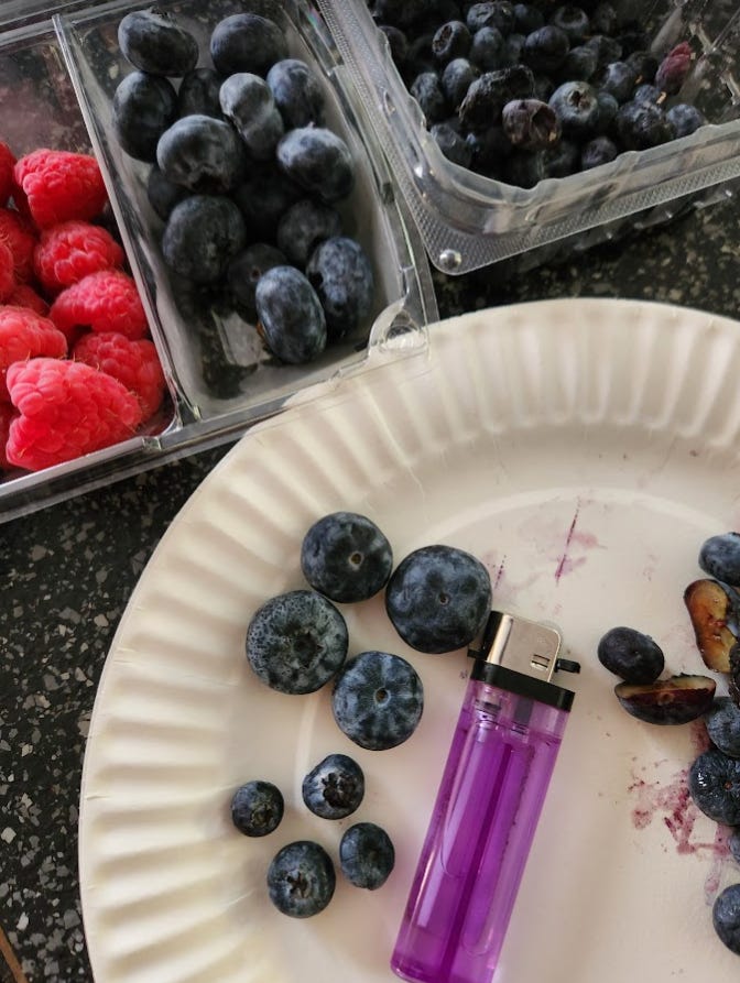 Also, in with my Whole Foods order was blueberries. When I opened the package I discovered the blueberries from Whole Foods were oddly massive when compared to normal blueberries from Kroger: