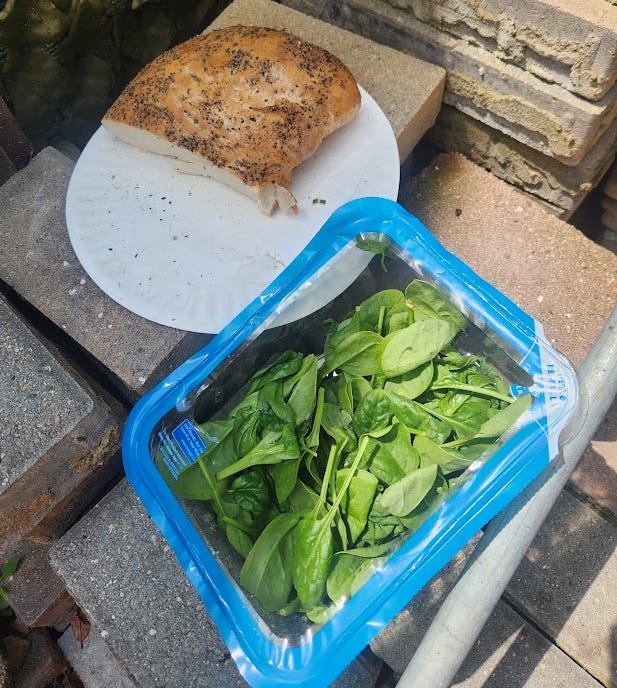 Half of a turkey and spinach: