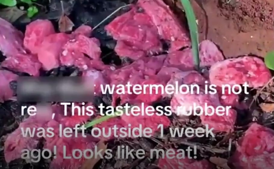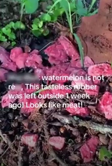 I then came across a new video in which a dude left a watermelon out for a week. Since I am being blocked from downloading videos today, here’s screenshots: