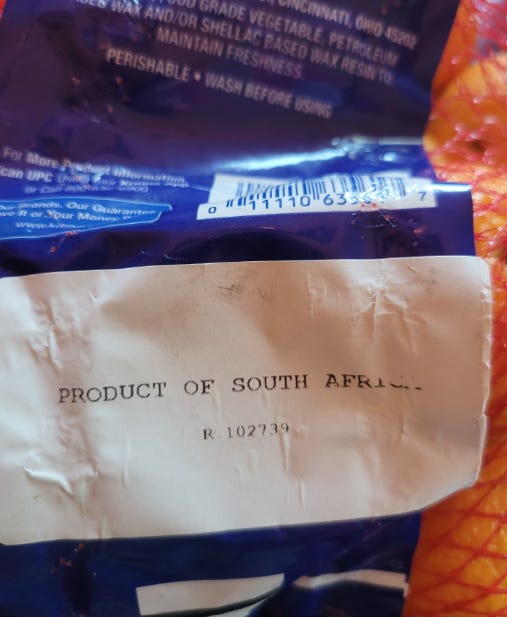 How old are these oranges that look brand new? And why are we importing oranges from Africa when we have oranges right here in the USA?