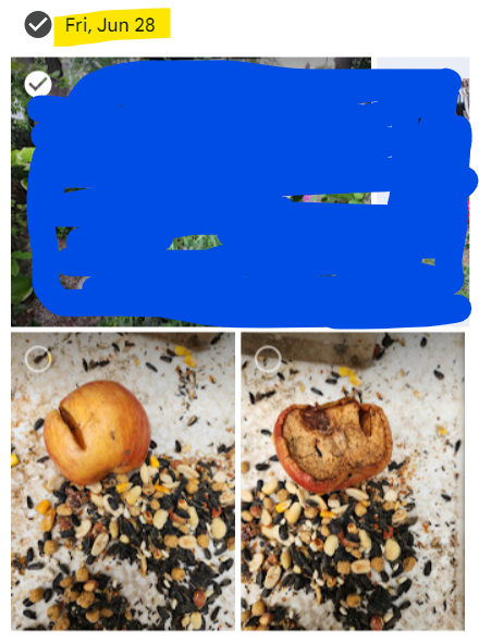 Upon its arrival, I tossed a slice in the garden and discovered the ants do still eat these. This means there are indeed ants and they do indeed still want fruit, they just didn’t want the local store organic apples or any of the other stuff that has been put out.
