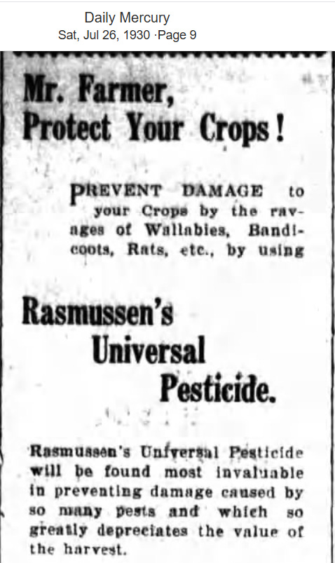 Back in Australia, they could now kill the wallabies and bandicoots, should those Godforsaken creatures touch the crops.