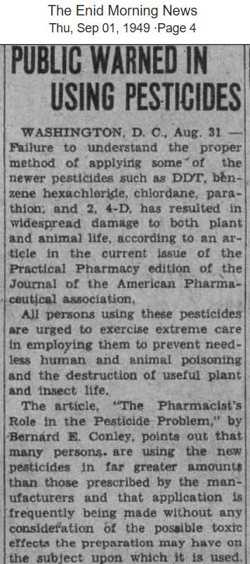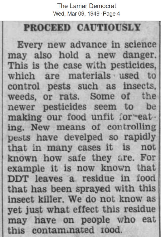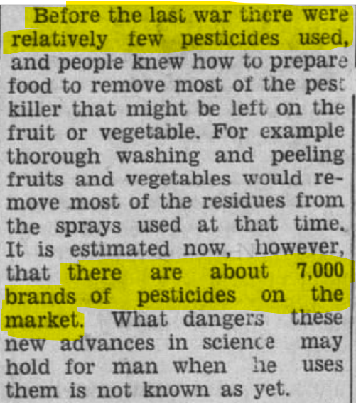 Before 1950, there were over 7,000 brands of pesticides for sale; DDT was just the one we hear about.