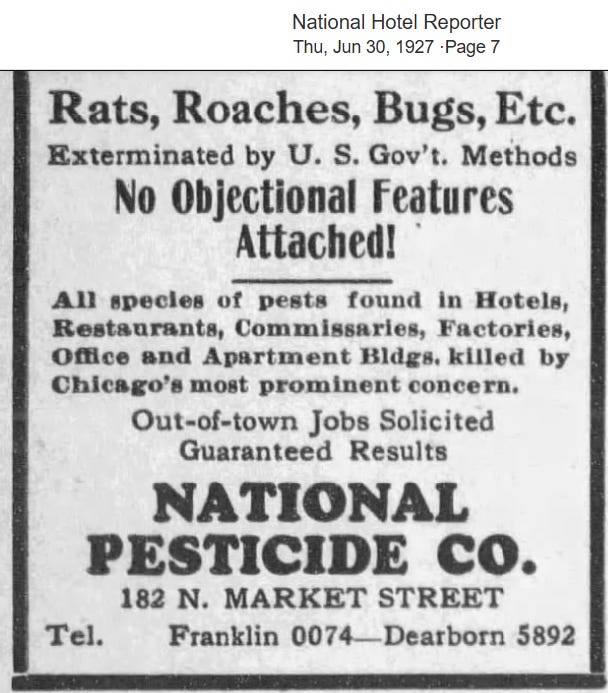 Between 1921 - 1930, the word pesticide was used 650 times, just in Illinois. Man now had the power to kill ‘em all, and because we had that power, why not use it? Who wants a dreaded ant walking on their porch?
