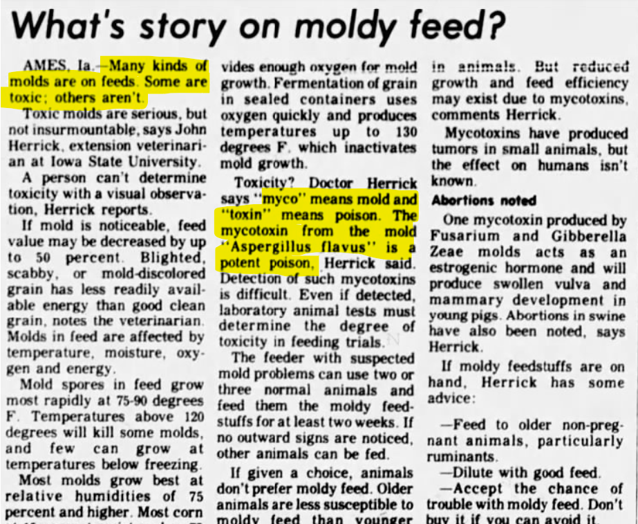 Back then, it was labeled a “rare hazard”, but nonetheless a hazard. If this fungus-mold shows up on your farm, Lord help you or your animals if you eat or inhale it.
