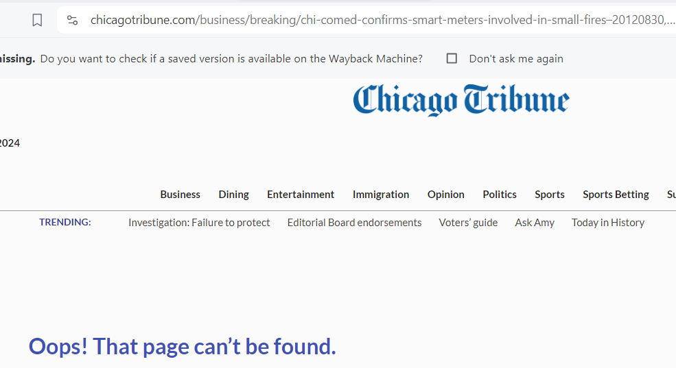 The good news is, more often than not, I can retrieve the deleted content, and it is always interesting to see what was purposefully removed. Without further ado, let’s look at content they tried to permanently remove from the internet regarding Smart Meter fires:
