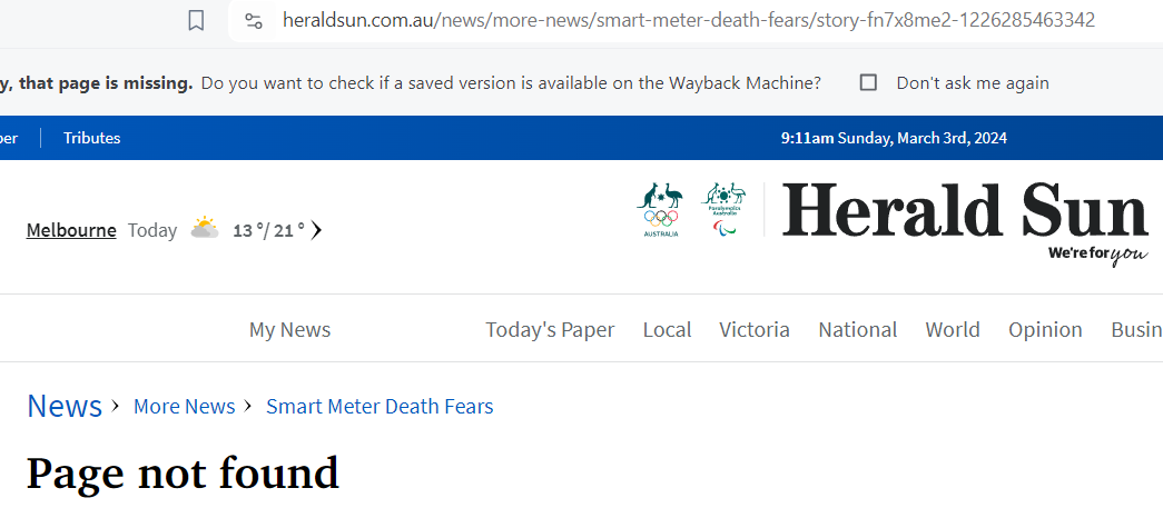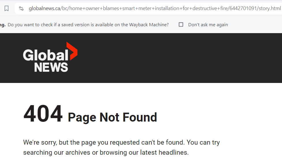 I find it exceptionally interesting that all of this content is being mass-deleted starting in 2021! If you come across important Smart Meter Fire content, download / save, or at least grab the URL and save that right away. Once the link is gone, I have no way to access it.