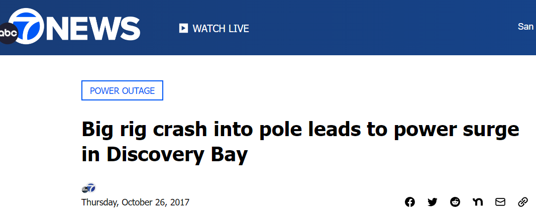 Here’s a truck that crashed into a pole, causing an entire area to have a power surge (because there is no surge protection!)