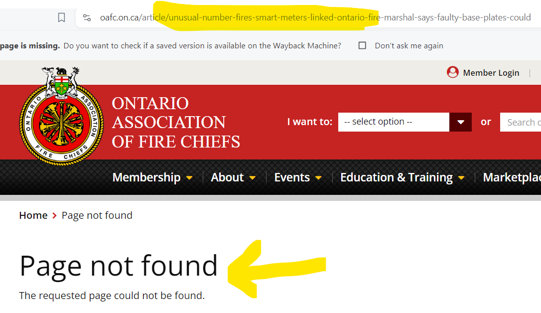 Sound the fire alarm! I caught the FIRE CHIEFS ASSOCIATION deleting SMART METER FIRE HAZARD content from their website!