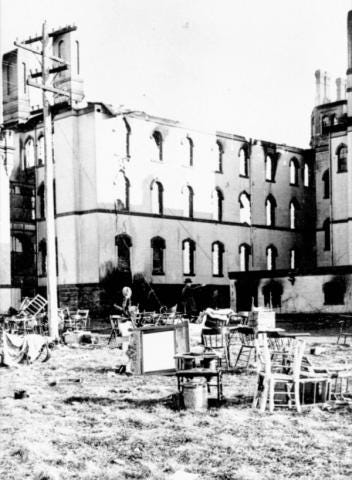 This insane castle-like building was Iowa State College. It went ablaze in 1900:
