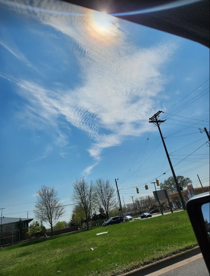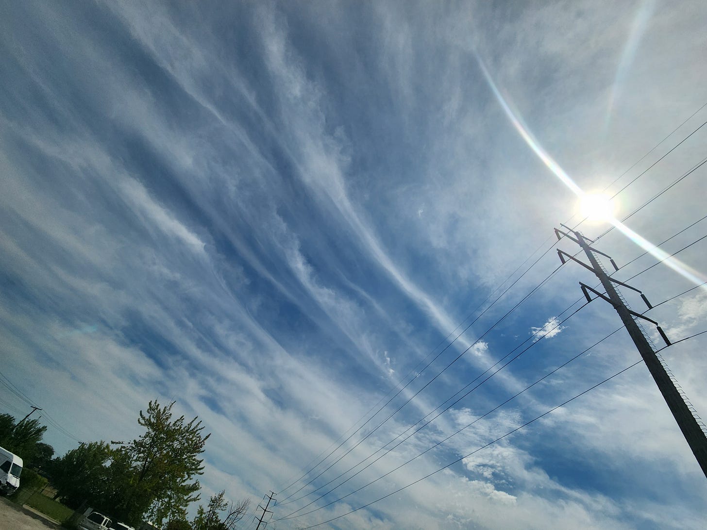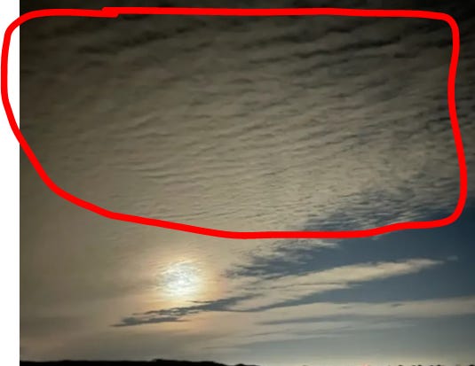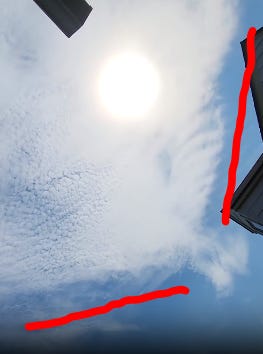 In that summer of 2023, as I sat outside, I noticed the spraying seemed to greatly reduce. In fact, many days I didn’t see any lines in the sky, yet the sun was ALWAYS blocked by clouds. If the sun broke free of the clouds, within minutes the clouds would magically shift to cover it. I know this sounds insane, which is why I have photos and videos to show you.