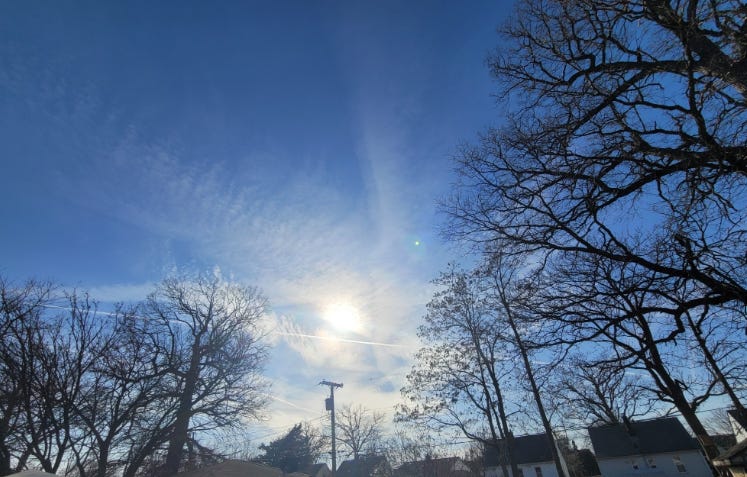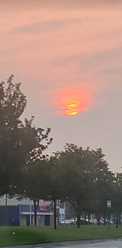 Here's a Michigan sunrise during the February 2024 “severe winter storm” (which followed the January Arctic Freeze). They have a full day of block-the-sun on deck (P.S: The sun no longer looks normal):