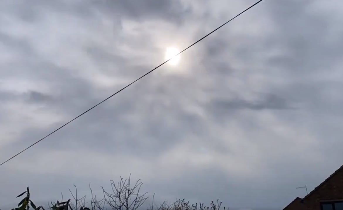 Here’s the same sh*t, different day. This one is even crazier because they are pushing in clouds from both directions to sandwich the sun: (37 second video)
