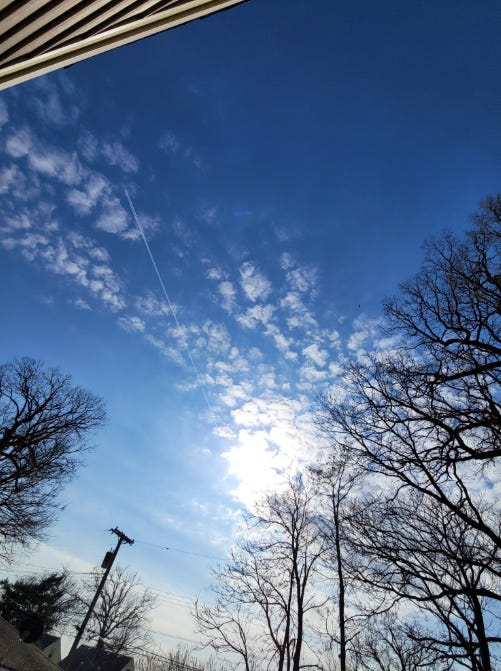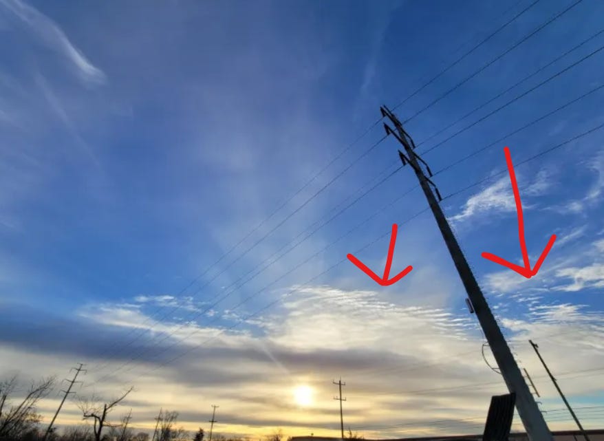 Fast forward to 2023: During the summer, I like to do my computer work on my laptop outside, so I can soak up whatever sun we are allowed to have. Prior to 2023, while I sat outside, I would watch the planes spray, spray, spray. Like clockwork, our beautiful, blue Michigan sky would be dirty gray-white by lunch. No sun for me. No sun for the plants. No sun for the frogs I had to buy frogs to add to my pond because all of our Michigan frogs vanished. Now I have to buy insects to feed the pond frogs because all of our insects vanished too… (1:12 video)