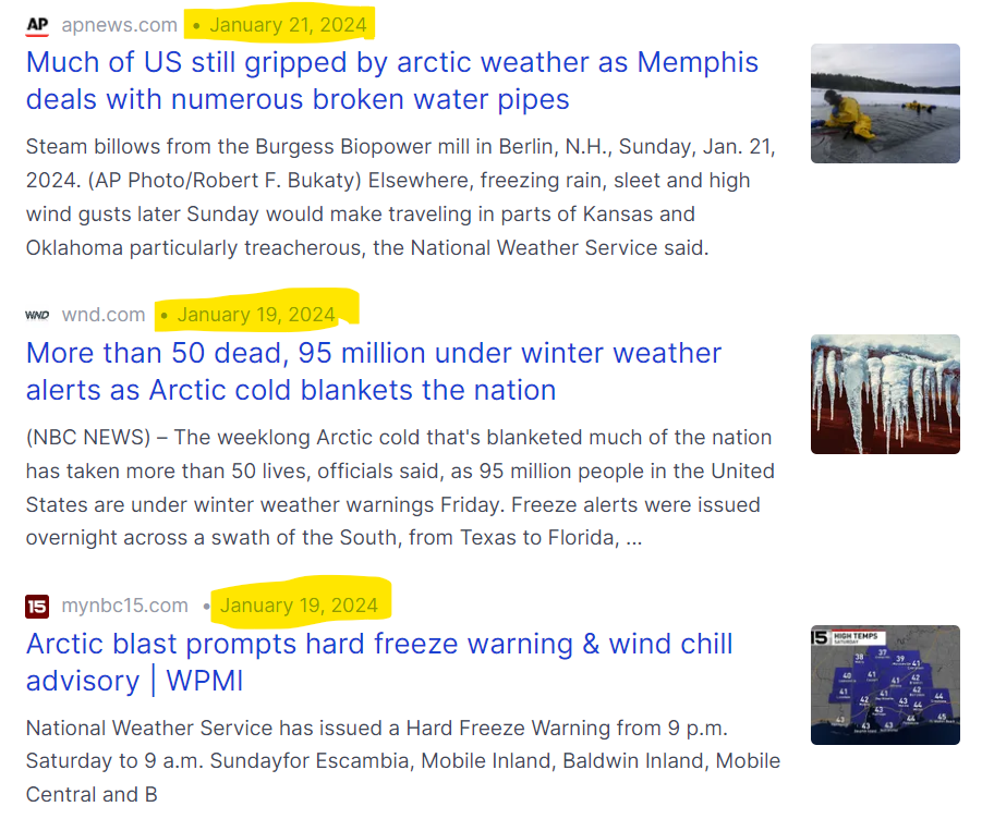 In January, 2024, the United States was hit with a freak storm called “The Arctic Freeze”. The freeze caused death and destruction: