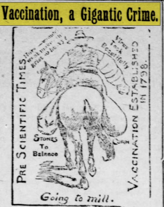 It was stated, with the exception of milkmaids, smallpox was seldom or never heard of. When doctors were bribed and people were injected with filth, the disease spread.