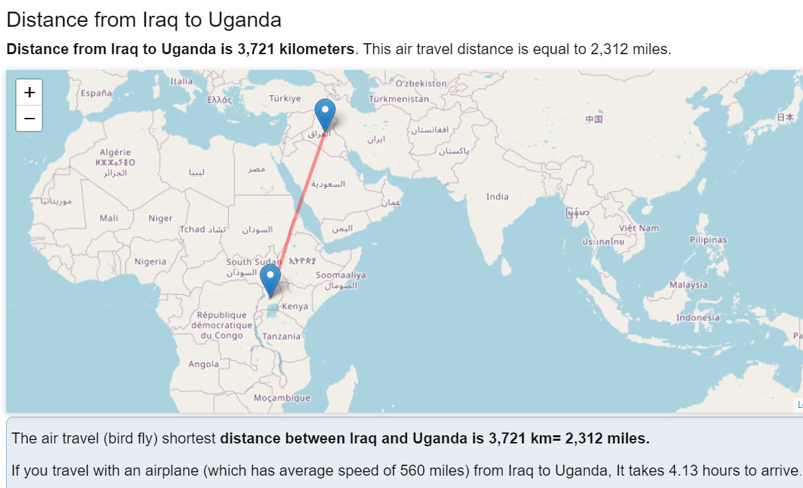 And it’s not far from the Isis headquarters of Iraq, only 4 hours flight from Uganda: