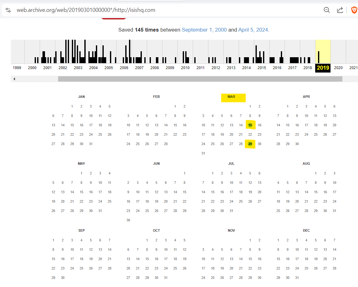 2019?! Both good Isis and bad Isis disappeared in 2019?! When was the last website capture for IsisHQ.com before it went offline? I am going to sh*t my pants if it was March 2019…