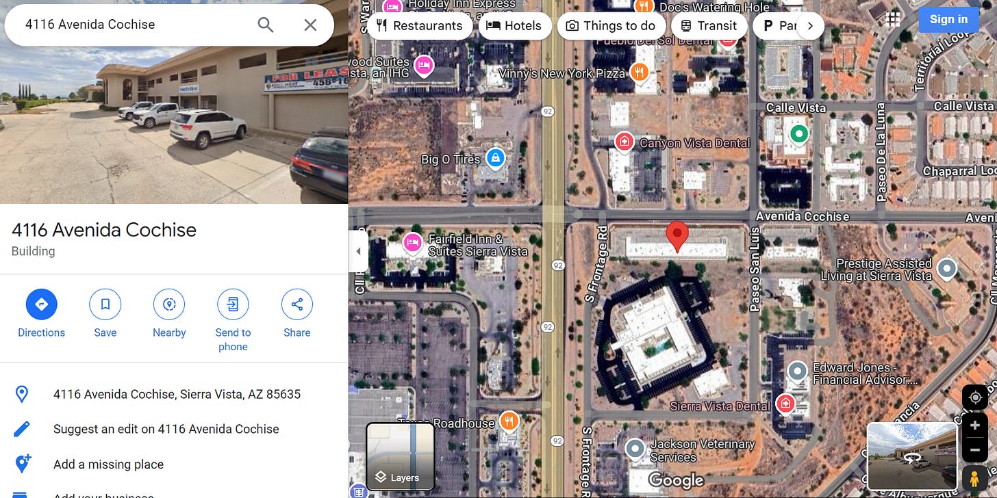 The next address was in Sierra Vista, Arizona: