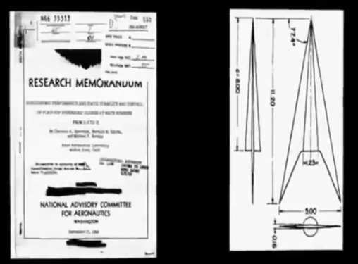 1950s: The “Hypersonic Wing Design” is created, take a mental picture of the shape of the wing shown on the right: