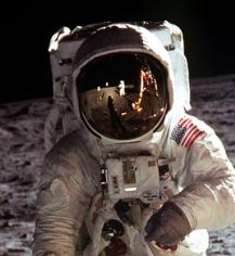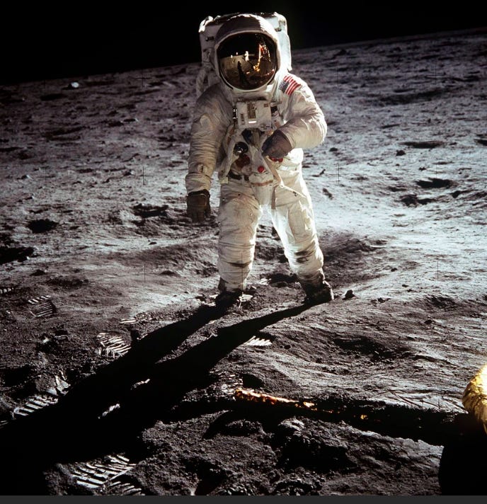 Because tv's weren’t completely mainstream yet, photos were a top priority. Here’s the photo of Buzz Aldrin, the first man to walk on the moon. Technically, he must have been the second man on the moon, because the person taking the photo apparently made it to the moon before Buzz, but whose counting?: