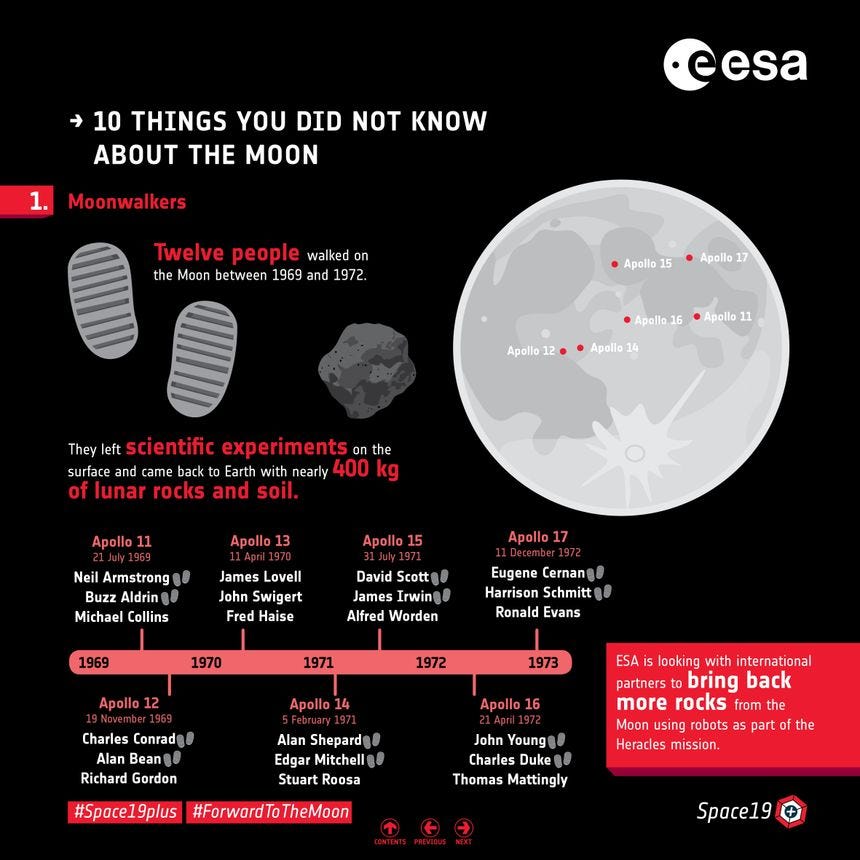 Did you know that 12 people walked on the moon from 1969 to 1972? (3 years, and 12 is 1+2 = 3)