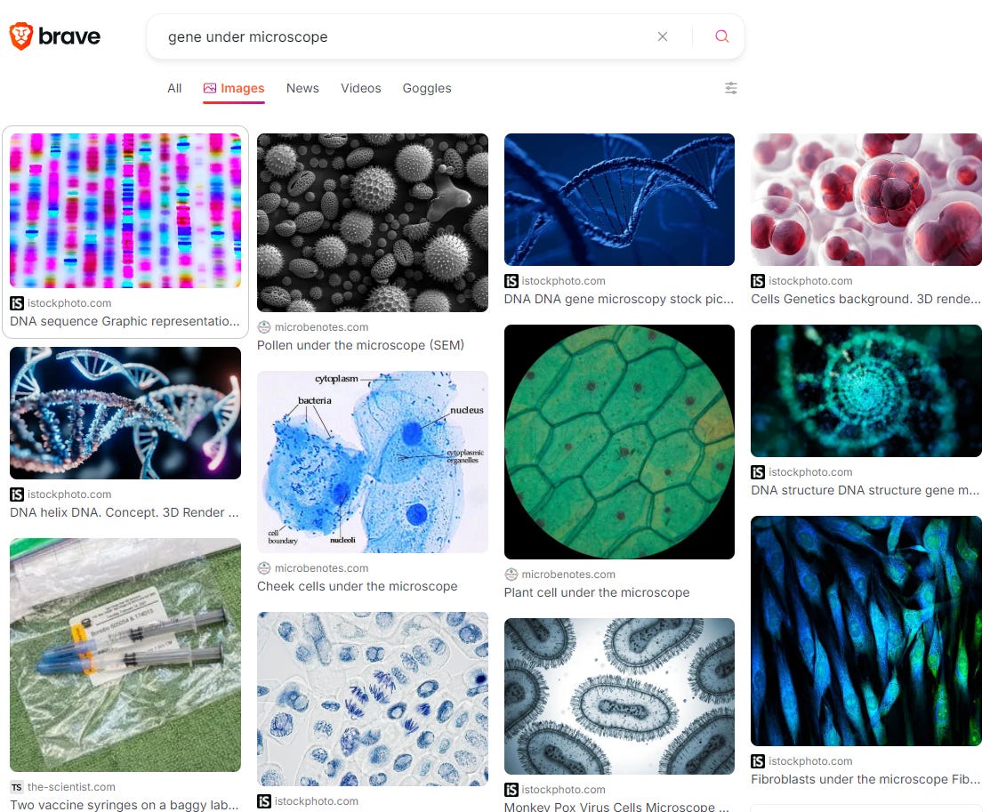 CGI wasn’t what I was looking for, maybe I wasn’t specific enough? Let me try again this time “gene under microscope photograph”