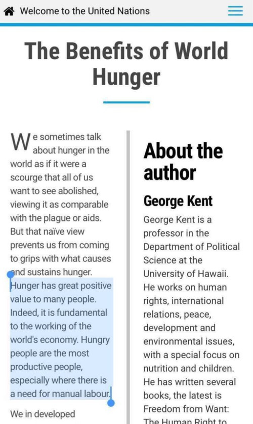 2008: This was when the United Nations published an article titled “The Benefits of World Hunger” (they have since deleted it for obvious reasons, I'm not sure why)