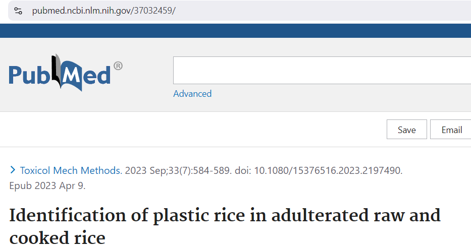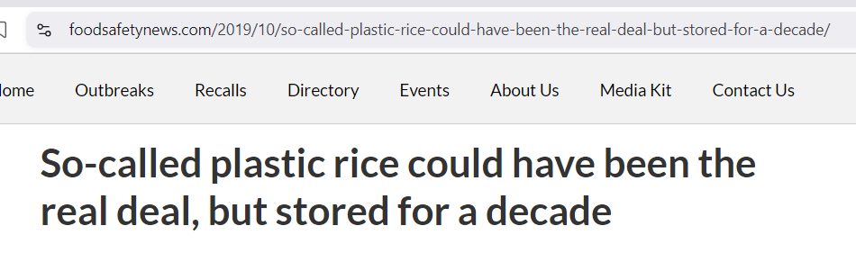 Quote, “Results suggest that plastic rice used as an adulterant in raw or cooked rice is made up of polystyrene.”. Then there’s this: