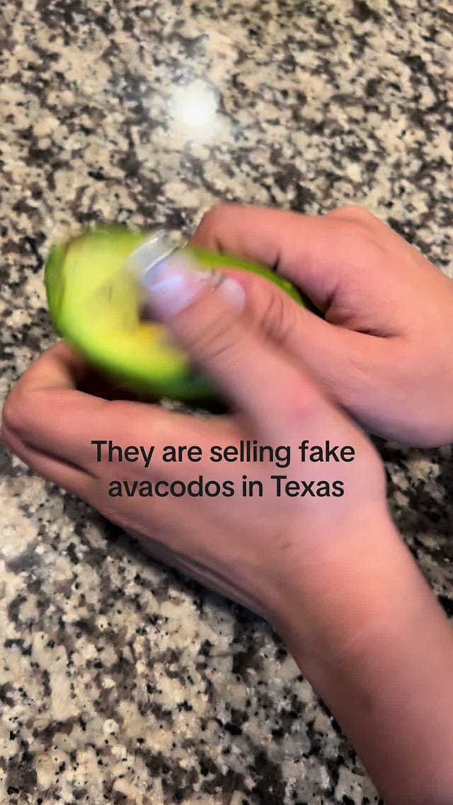 Yep, there it is, the totally manmade avocado that looks strikingly similar to a real avocado: