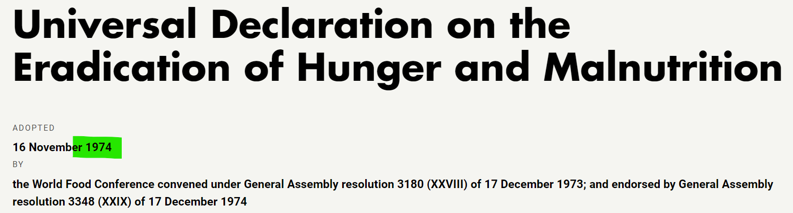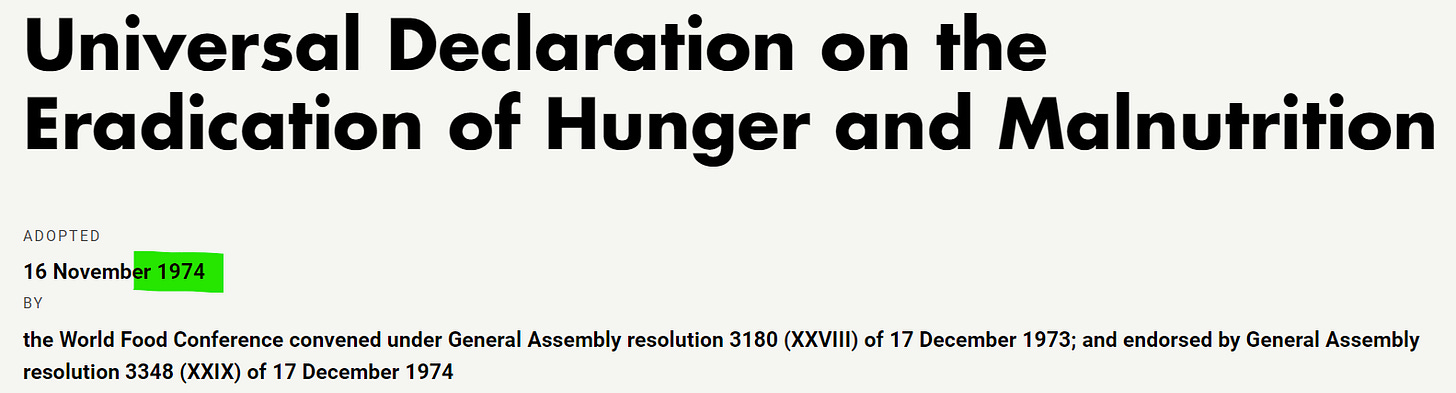 Rewind to 1974. It was during this year that the United Nations implemented a Universal Declaration to Eradicate Hunger and Malnutrition