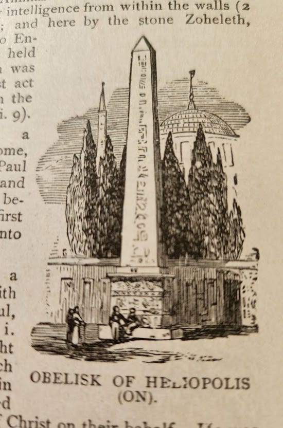 ”The Obelisk of Heliopolis, also known as Cleopatra's Needle, was originally erected in 1475 BCE in the Egyptian city of Heliopolis during the reign of Thutmose III.7 It stands 69 feet (21 meters) high and weighs approximately 200 tons. The obelisk was part of a pair of obelisks carved from red granite extracted from the quarries of Aswan, both of which were transported down the Nile to Heliopolis.