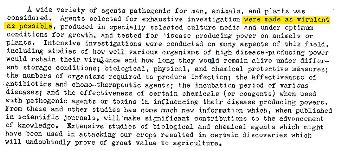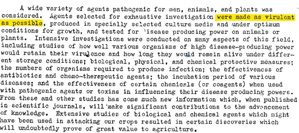 In case you missed that, THEY WERE WORKING ON CREATING BIOLOGICAL WEAPONS THAT COULD HAVE A TIME-DELAY, SO PEOPLE WOULD BE CONFUSED AS TO THE CAUSE. Maybe I should make the font larger? Ok, lets try that: