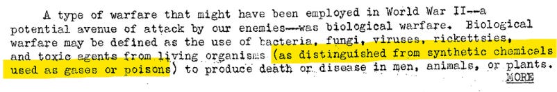 I would also like to point out, one major area of focus for biological weapon development was “incubation period”, meaning how long it takes someone to fall ill (and God willing, die). They wanted to control whether the weapon would harm on impact, or if the reaction could be delayed. A delayed reaction would cause confusion regarding the cause of the symptoms.