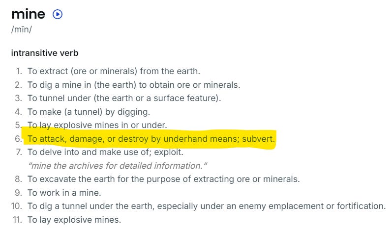 When vitamins were discovered, they weren’t called vitamins, they were called vitamines. Nobody really knows why they were called vitamines, but modern day researchers “suggest“ that the name came from two words, vital and amine - but this is just their guess - what if they’re wrong? You see, the powers that be believe in their own version of The Law of Karma, also known as the Revelation of Method, put simply, this means they have to show us. The way it works is, they (powers that be) have to inform us of exactly what they are doing, and by telling us / showing us they feel they are relieved of the bad karma caused by their actions. This is why on 9/11 they repeatedly told us what we were being shown on TV wasn’t real, why the news doesn’t make sense to any logical thinker, why NASA only gives us horrible CGI as evidence of outer space when they have the ability to produce incredible CGI, why the Nashville shooters shoes changed color, and so on; they have to show us. With that being said, let’s look at the word Vitamine as VITA + MINE, what do these two words actually mean?