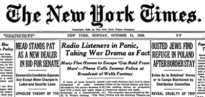 In 1938, one year before WWII, “The War of the Worlds” was broadcast live on air. The War of the Worlds was a science fiction novel which the broadcaster chose to read on air, news bulletin style.